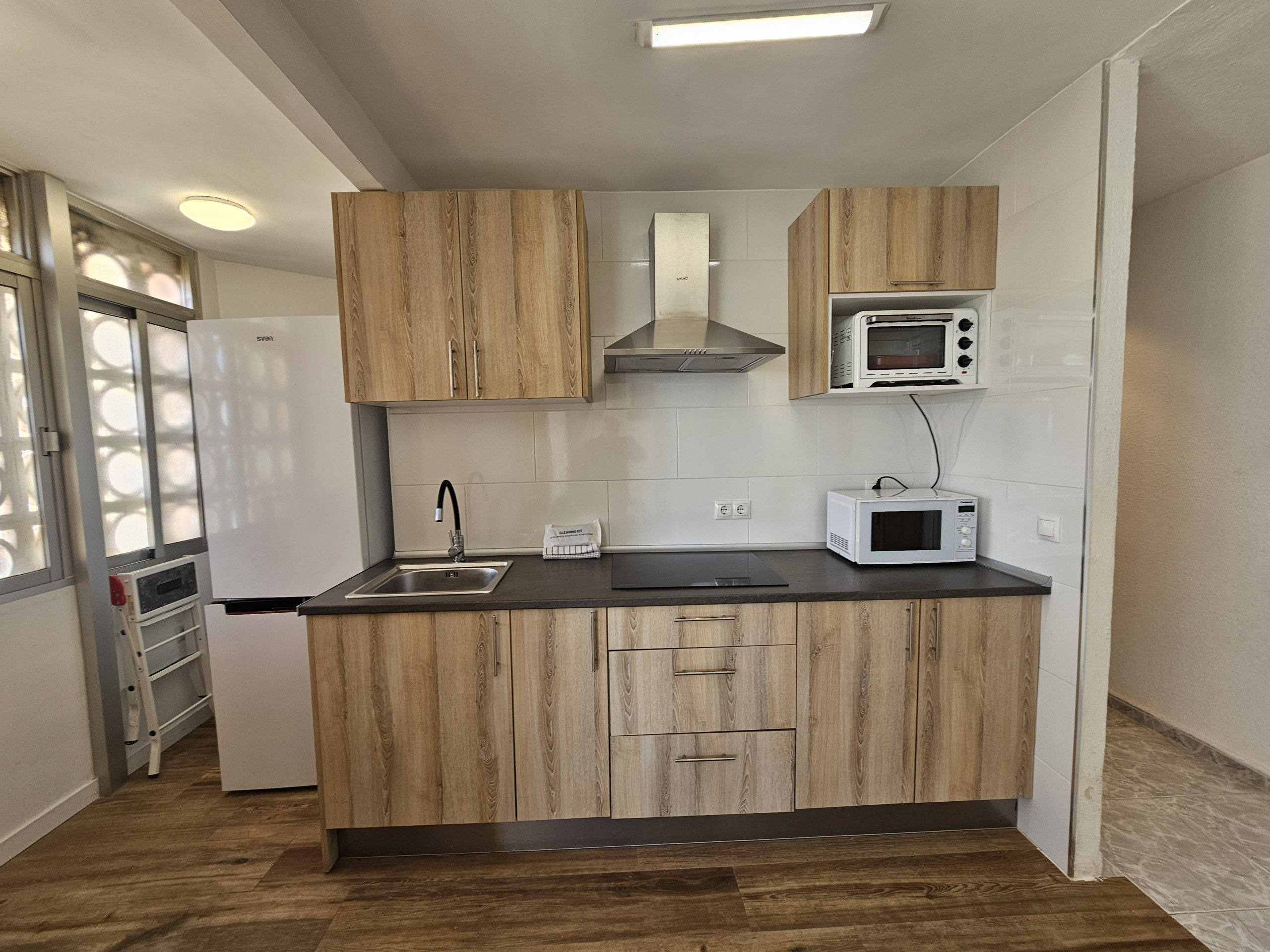 La cocina americana, de vitrocerámica, está equipada con nevera, microondas, congelador, vajilla/cubertería, utensilios/cocina, cafetera, tostadora y hervidor de agua.