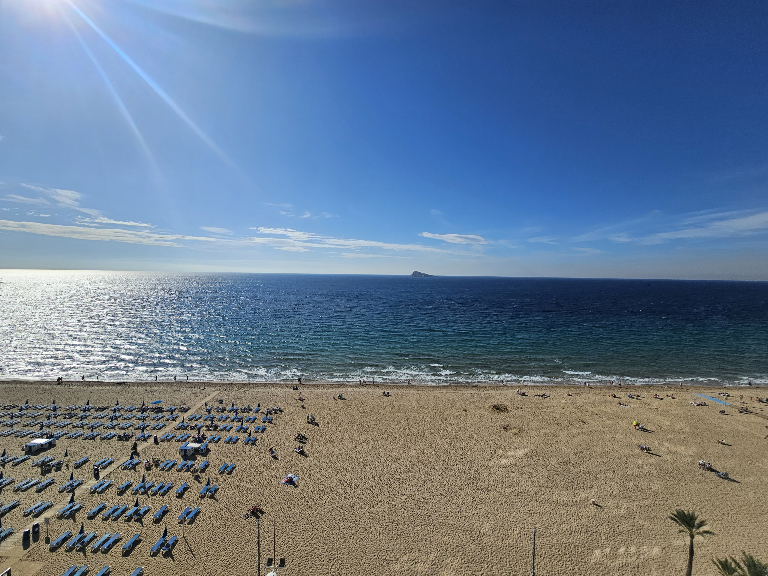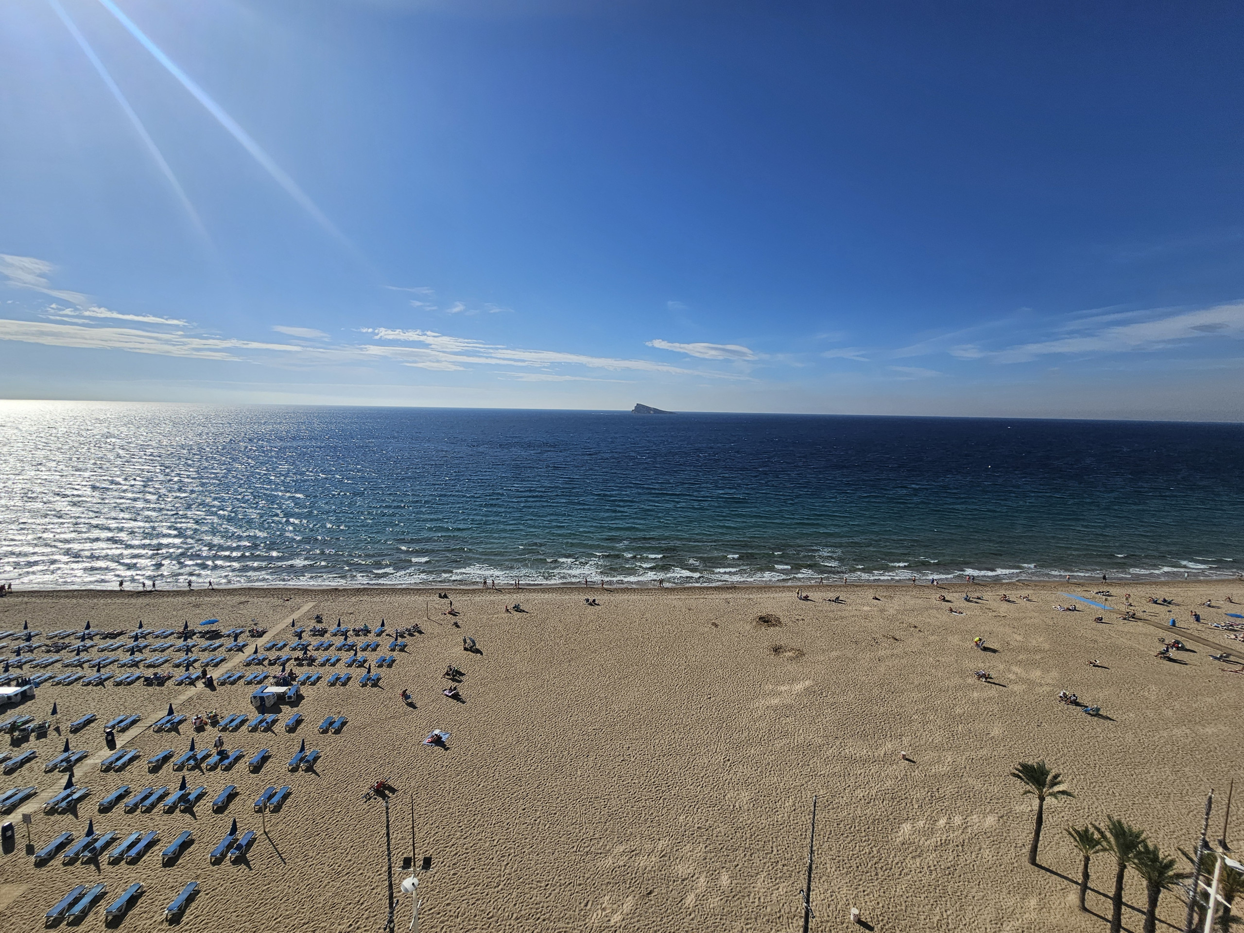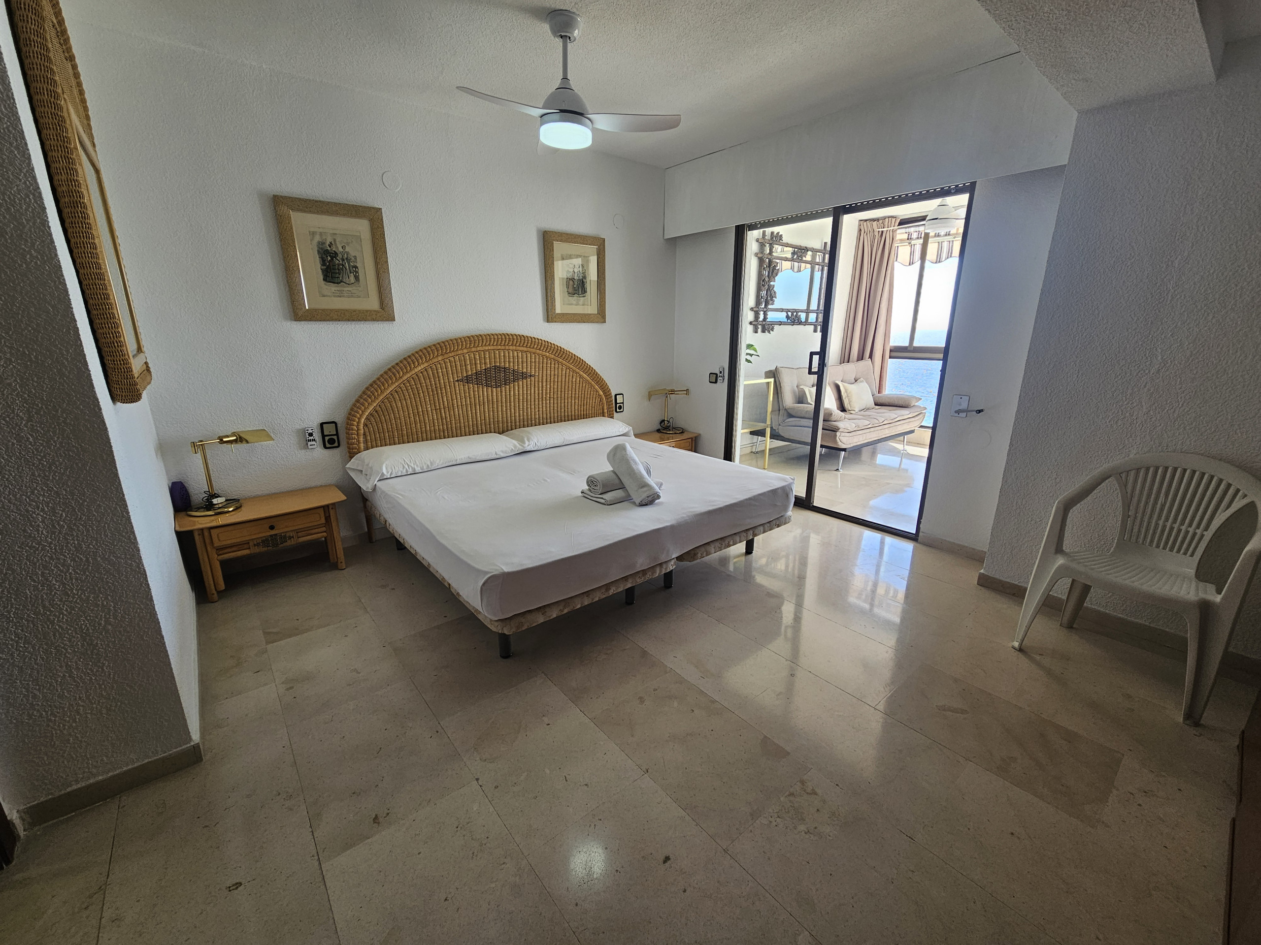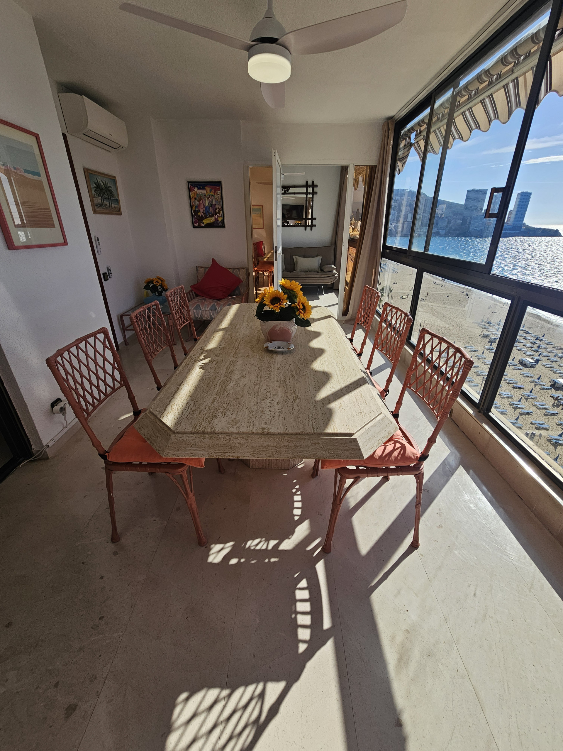 El apartamento en Benidorm posee 2 dormitorio(s) y capacidad para 4 personas. Alojamiento de 98 m² acogedor y totalmente equipado, situado en primera línea de playa, con vistas al mar. Se encuentra a 50 m de la playa de arena "pPaya levante", 50 m del restaurante, 50 m de la cafetería, 300 m del supermercado "Comsun", 1 km del hospital, 2 km del parque natural "SIERRA HELADA", 2 km de la ciudad "Casco antiguo", 3 km de la estación de autobuses "ESTACION DE BENIDORM", 3 km del parque acuático "AQUALANDIA", 8 km del parque de atracciones "TERRA MITICA", 45 km de la estación de tren "Alicante", 57 km del aeropuerto "Elche", 57 km del aeropuerto internacional "ELCHE ALICANTE" y está ubicado en una zona tranquila y junto al mar.Dispone de ascensor, lavadora, plancha, acceso internet (wifi), secador, calefacción bomba de calor, aire acondicionado, piscina comunitaria+infantil, parking aire libre en mismo edificio, 1 Televisor.La cocina independiente, de vitrocerámica, está equipada con nevera, microondas, horno, congelador, vajilla/cubertería, utensilios/cocina, cafetera, tostadora y hervidor de agua.