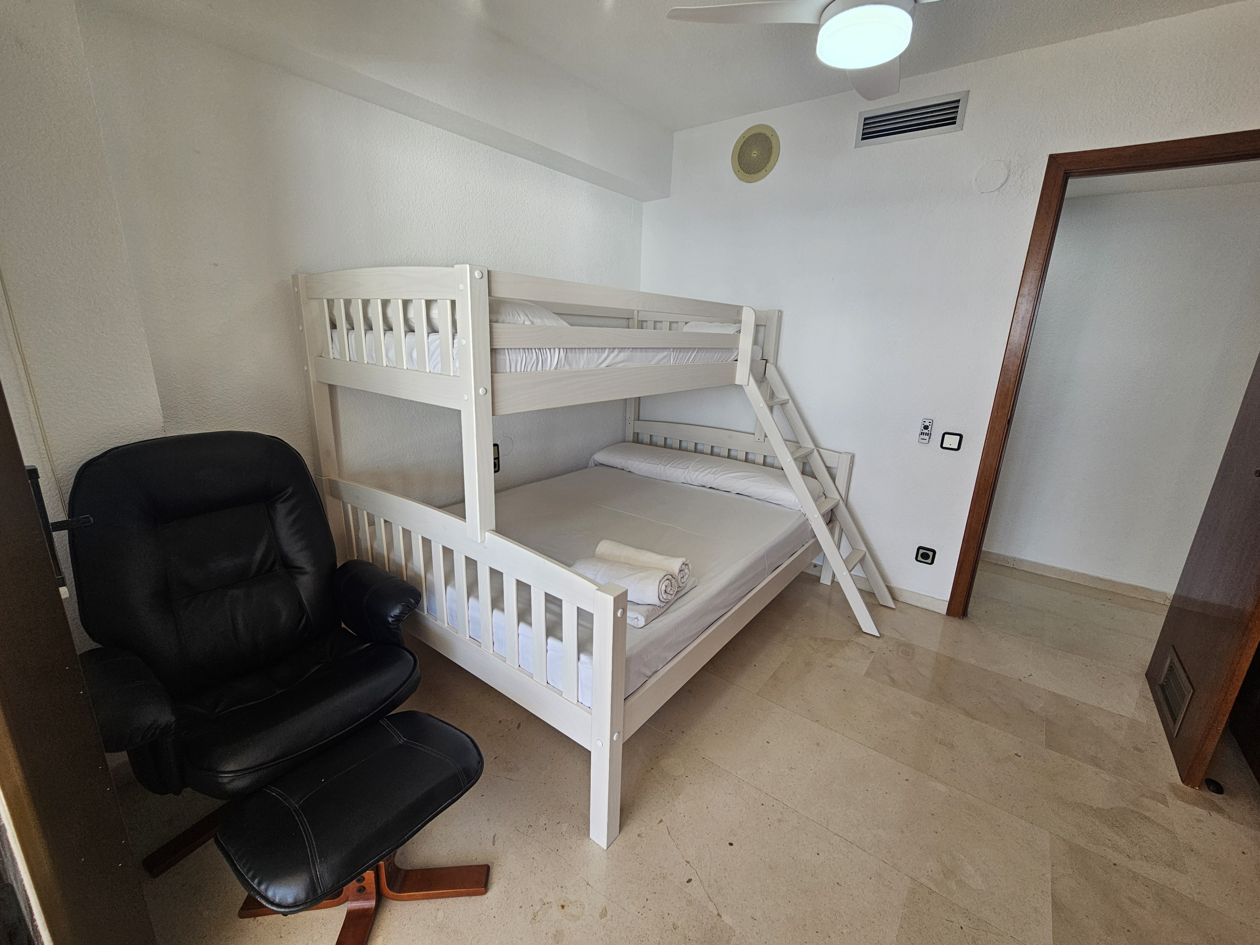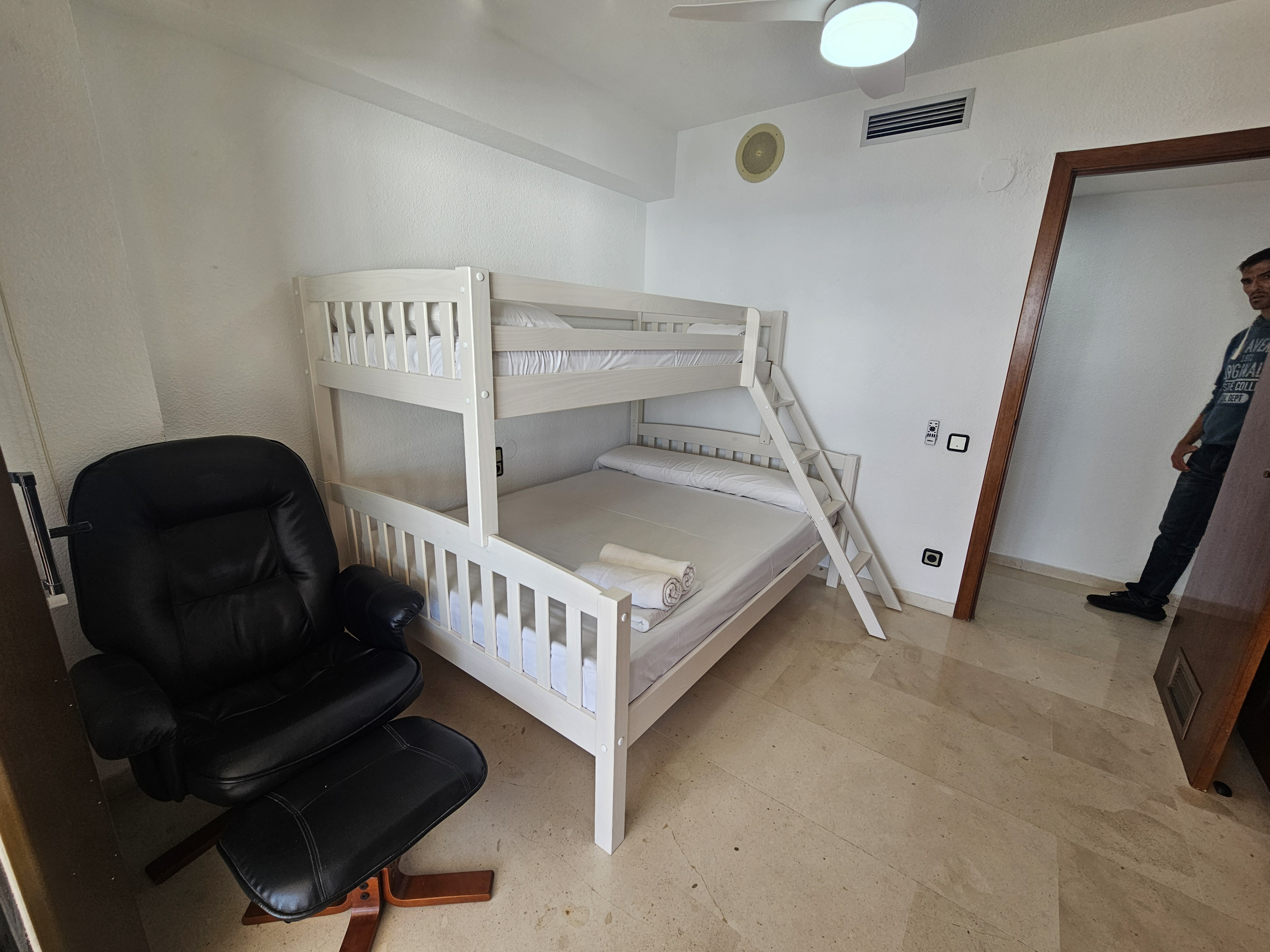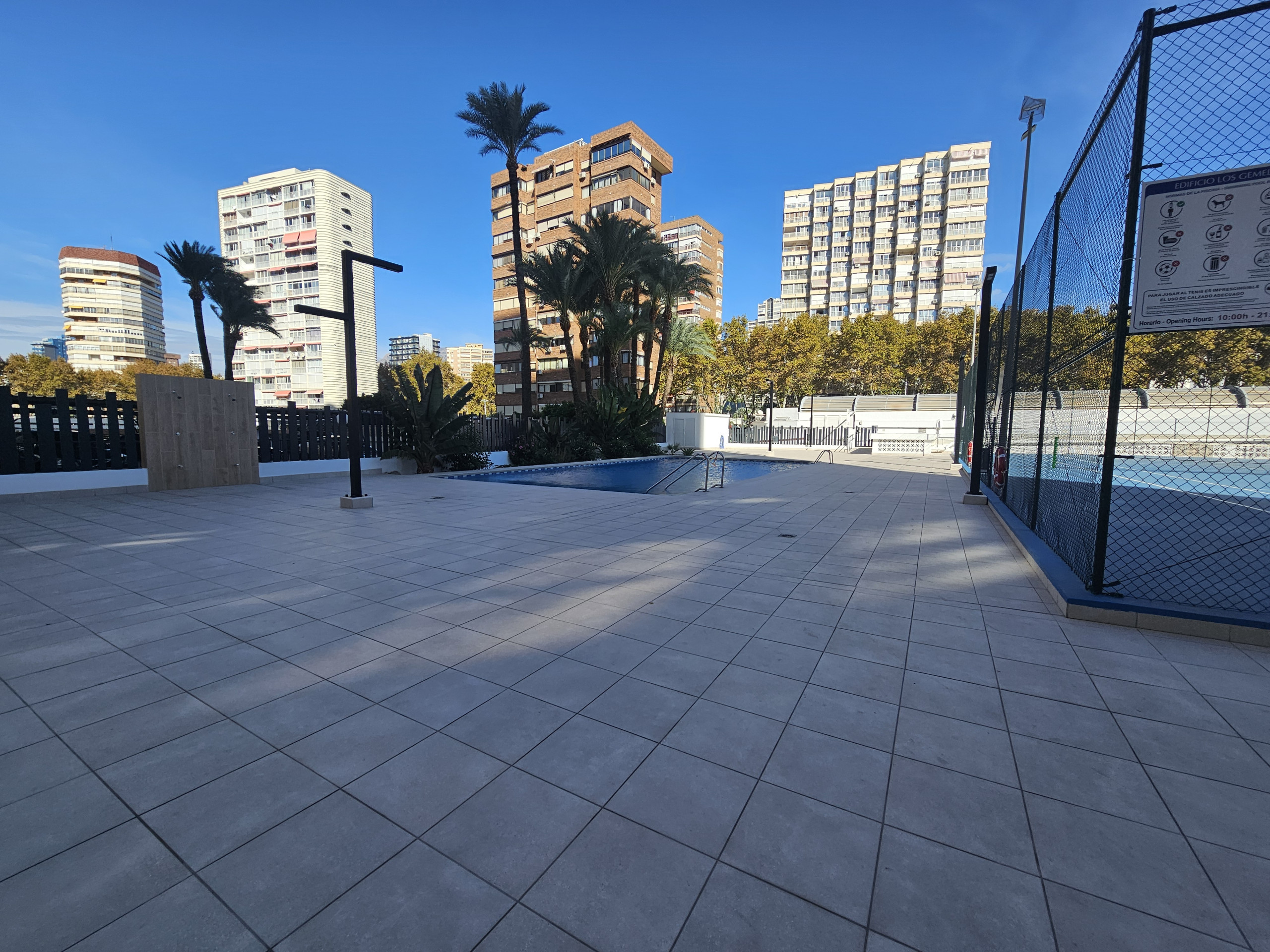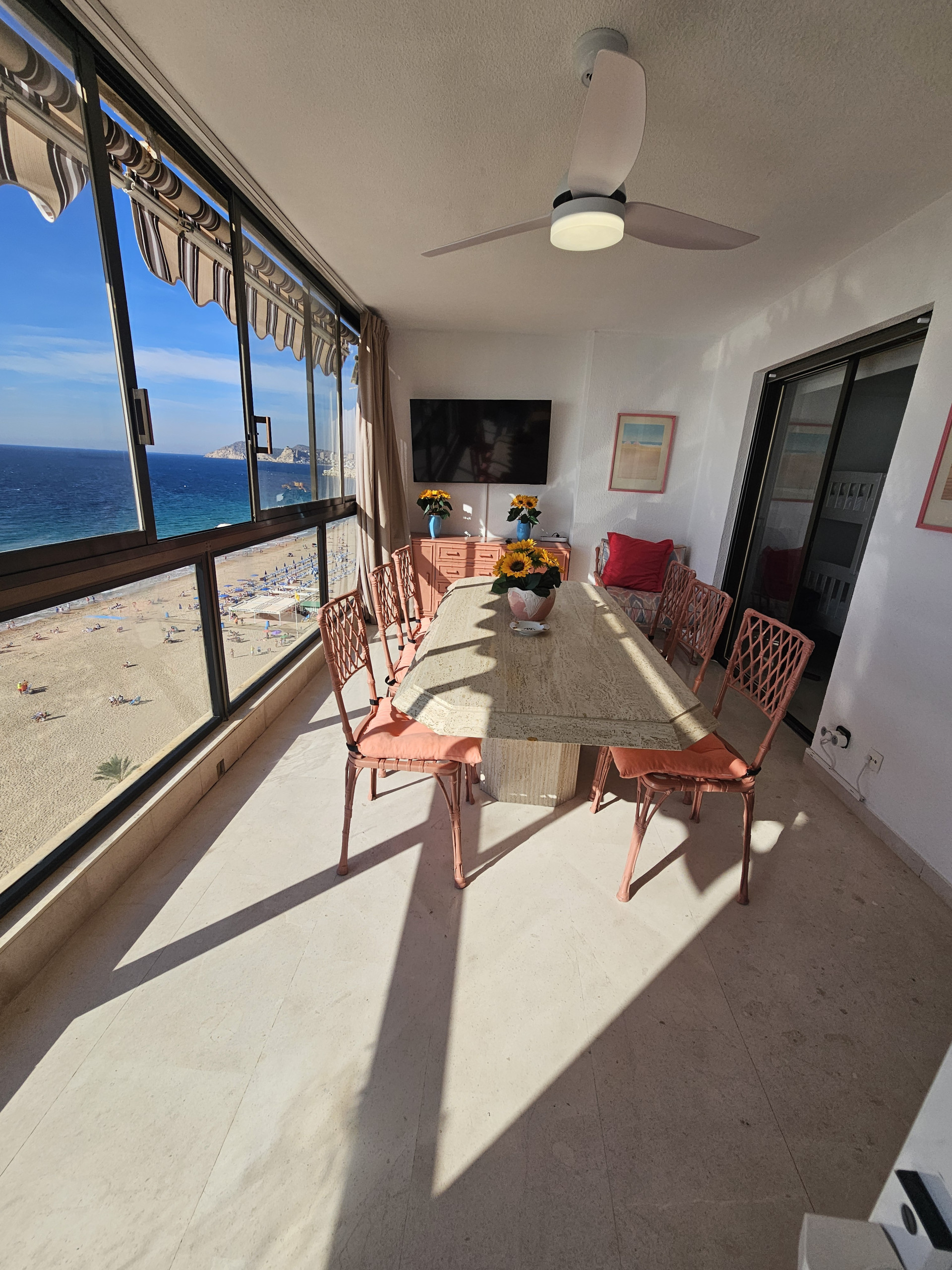 El apartamento en Benidorm posee 2 dormitorio(s) y capacidad para 4 personas. Alojamiento de 98 m² acogedor y totalmente equipado, situado en primera línea de playa, con vistas al mar. Se encuentra a 50 m de la playa de arena "pPaya levante", 50 m del restaurante, 50 m de la cafetería, 300 m del supermercado "Comsun", 1 km del hospital, 2 km del parque natural "SIERRA HELADA", 2 km de la ciudad "Casco antiguo", 3 km de la estación de autobuses "ESTACION DE BENIDORM", 3 km del parque acuático "AQUALANDIA", 8 km del parque de atracciones "TERRA MITICA", 45 km de la estación de tren "Alicante", 57 km del aeropuerto "Elche", 57 km del aeropuerto internacional "ELCHE ALICANTE" y está ubicado en una zona tranquila y junto al mar.Dispone de ascensor, lavadora, plancha, acceso internet (wifi), secador, calefacción bomba de calor, aire acondicionado, piscina comunitaria+infantil, parking aire libre en mismo edificio, 1 Televisor.La cocina independiente, de vitrocerámica, está equipada con nevera, microondas, horno, congelador, vajilla/cubertería, utensilios/cocina, cafetera, tostadora y hervidor de agua.