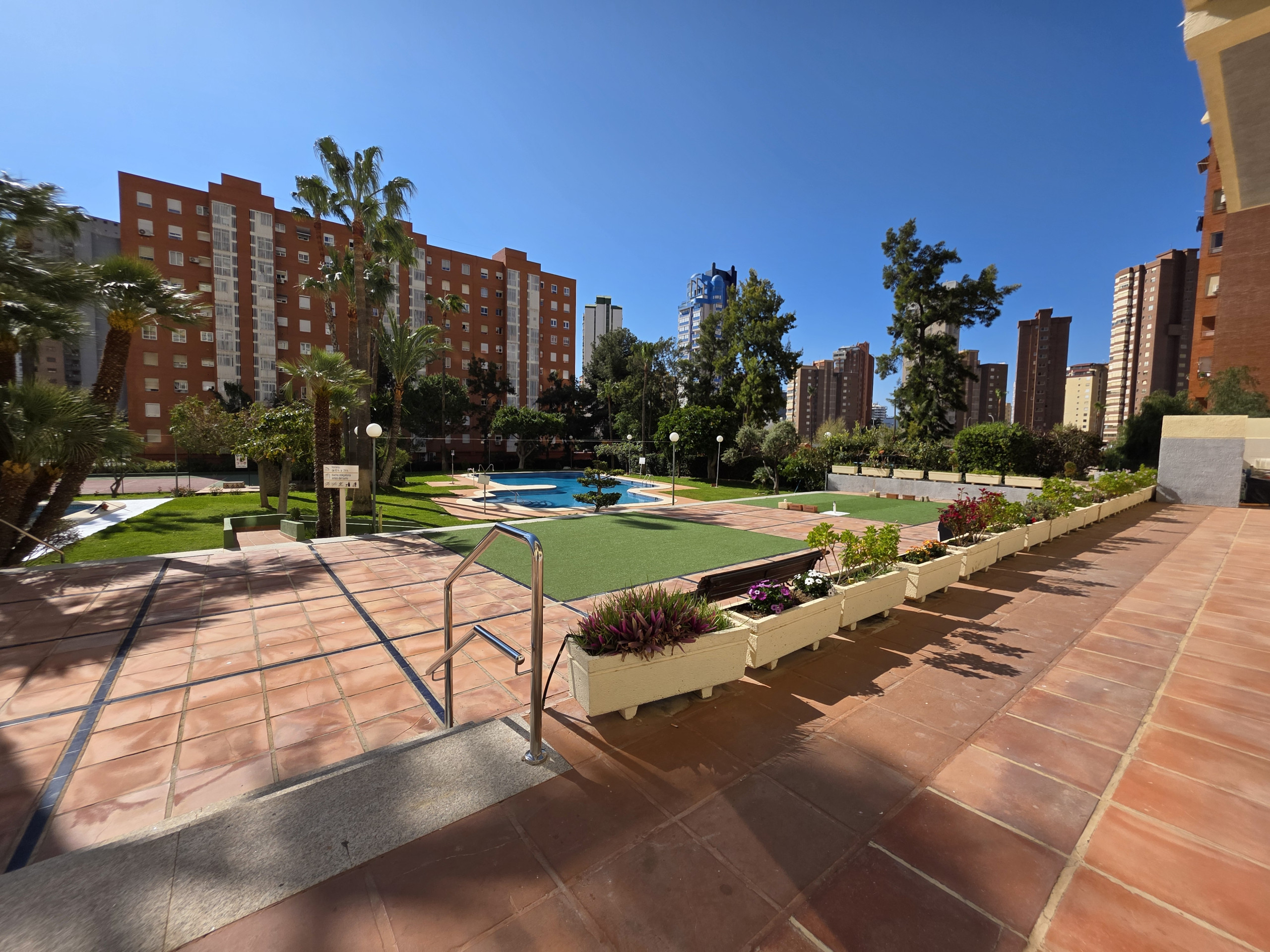 El apartamento en Benidorm posee 2 dormitorio(s) y capacidad para 4 personas. Alojamiento de 50 m² acogedor y totalmente equipado. Se encuentra a 50 m del restaurante, 50 m de la cafetería, 150 m del supermercado, 500 m de la estación de autobuses "ESTACION DE BENIDORM", 1 km de la playa de arena "PLAYA LEVANTE", 1 km de la ciudad "CASCO ANTIGUO", 2 km del parque acuático "AQUALANDIA", 3 km del parque natural "SIERRA HELADA", 45 km de la estación de tren "ESTACION ALICANTE", 57 km del aeropuerto internacional "ALICANTE", 57 km del aeropuerto "ELCHE" y está ubicado en una zona tranquila y en el complejo residencial.Dispone de ascensor, lavadora, plancha, acceso internet (wifi), secador, zona infantil, pista de tenis, aire acondicionado, piscina comunitaria+infantil, parking aire libre en edificio cercano, 2 Televisores.La cocina independiente, de vitrocerámica, está equipada con nevera, microondas, horno, congelador, vajilla/cubertería, utensilios/cocina, cafetera, tostadora y hervidor de agua.
