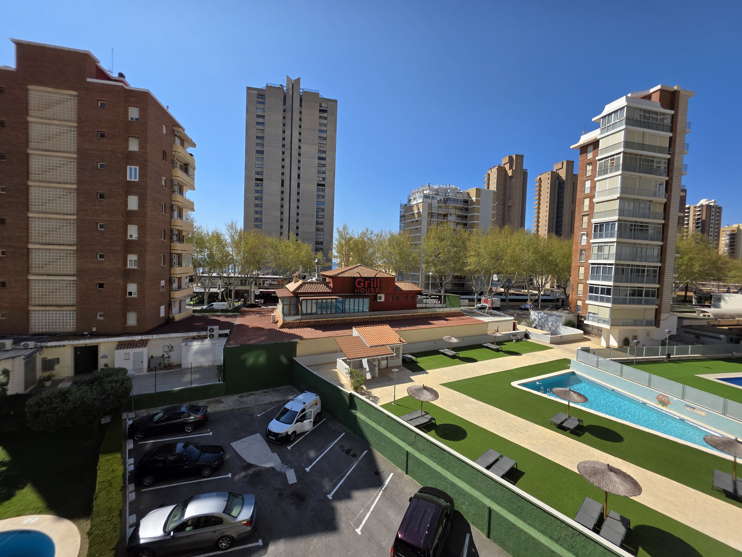 El apartamento en Benidorm posee 2 dormitorio(s) y capacidad para 4 personas. Alojamiento de 45 m² acogedor y totalmente equipado, con vistas a la piscina. Se encuentra a 0 m del supermercado, 100 m de la cafetería, 200 m del restaurante, 300 m de la playa de arena "PLAYA LEVANTE", 2 km del parque acuático "AQUALANDIA", 3 km del parque natural "SIERRA HELADA", 3 km de la estación de autobuses "ESTACION DE BENIDORM", 3 km de la ciudad "CASCO", 5 km del parque de atracciones "TERRA MITICA", 45 km de la estación de tren "ESTACION TREN ALICANTE", 55 km del aeropuerto "ELCHE" y está ubicado en una zona animada y próxima a comercios y restaurantes.Dispone de ascensor, lavadora, plancha, acceso internet (wifi), calefacción bomba de calor, aire acondicionado, piscina comunitaria+infantil, 1 Televisor.La cocina independiente, de vitrocerámica, está equipada con nevera, microondas, congelador, vajilla/cubertería, utensilios/cocina, cafetera, tostadora y hervidor de agua.